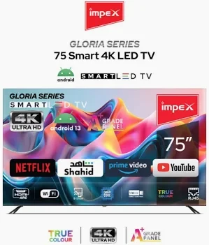 شاشة امبكس 75 بوصه سمارت جلوريا 4K ذكيه 4KULTRAHD